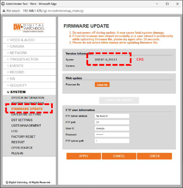 - Check that the current Firmware Version is installed on the camera [S13.02.03_20250409].