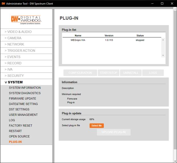- To upload the plugin, locate the Plug-in update section and click the “Select File” button.