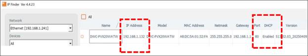 - Launch the DW IP Finder application on a computer, connected to the same local network as the camera.