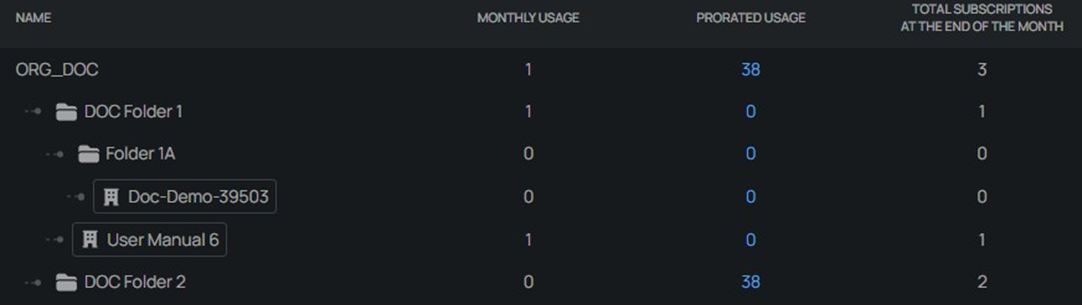 - Global search can also be used to locate usage statements for the past month.