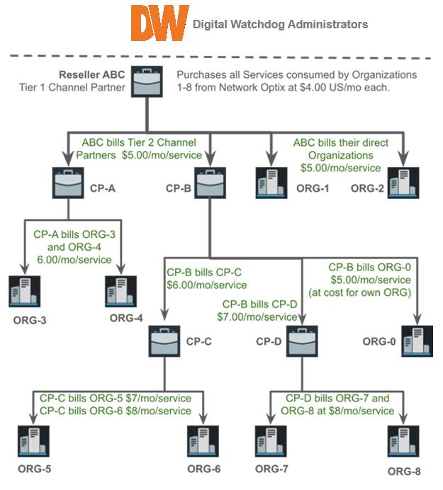 While Channel Partners set the price for all Subscription Services available to an Organization - it is the Organization Administrator who uses the Cloud Portal, not the DW Connect Portal, to configure the Organization, manage organization-level users, and grant the Channel Partner access to the Organization.