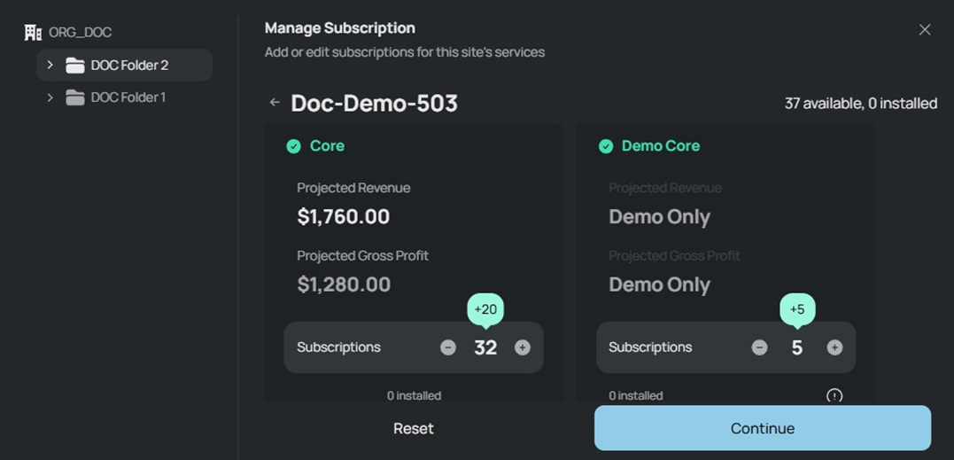 - The Channel Partners set the number of Subscription Services available to an Organization, and Organizations are invoiced for all available Subscription Services, including those not installed.