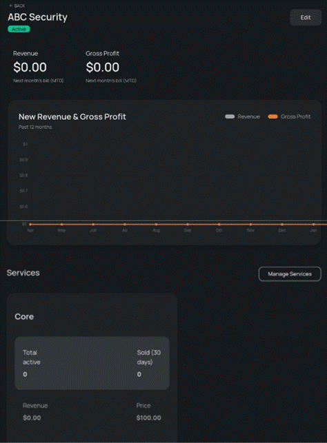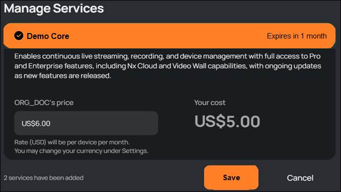 - Core Services must have a price set before the Add Service button will be enabled, demo services are free and added by clicking the Add Service button. Click the Save button to commit changes.
