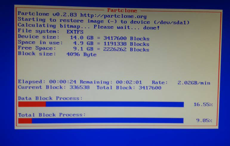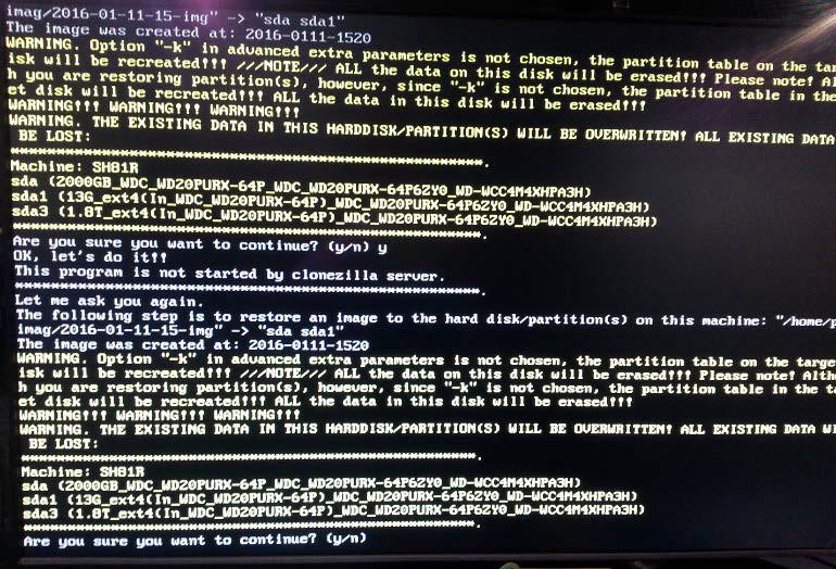 - Clonezilla will take some time to load setting and configurations for the recovery.