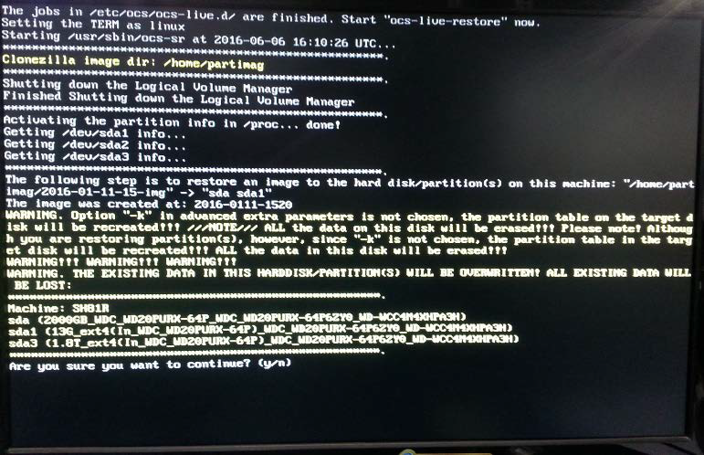 When the resulting “Are you sure you want to continue? (y/n)” query screen displays, press the Y key, then the Enter key to continue with the process.