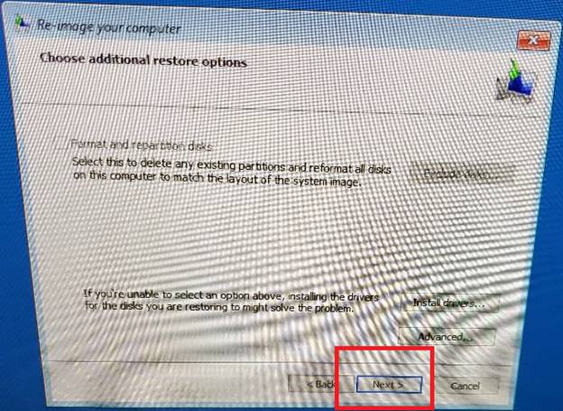 - On the Choose additional restore options screen, leave the settings as they are and click the Next button.