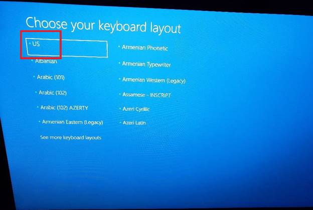 **NOTE: If your system does not generate the options as described above, you can press the F11 key during the boot to prompt the Windows Boot Manager. Make sure that you are not actually using an older server model that may require the use of a USB Recovery Key instead.