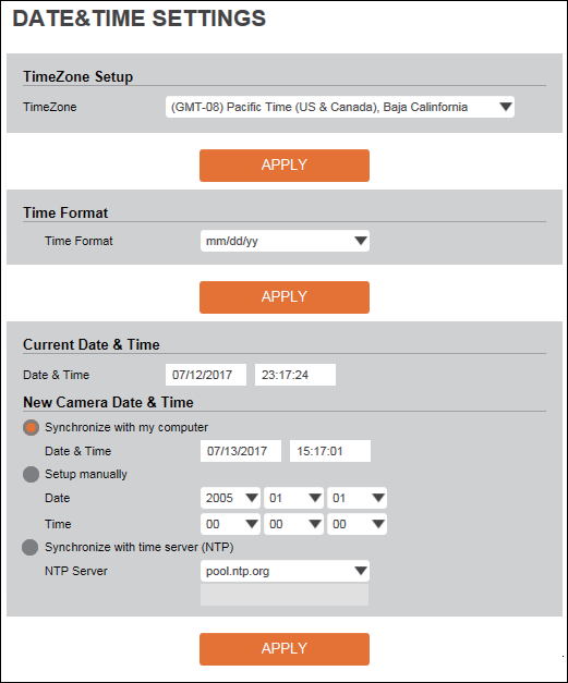 Alternatively, you can configure the camera’s settings using the web interface to manually set the current Date & Time.
