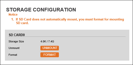- Navigate to the Edge > Storage menu and select the mounted SD Memory Card from the Storage List.